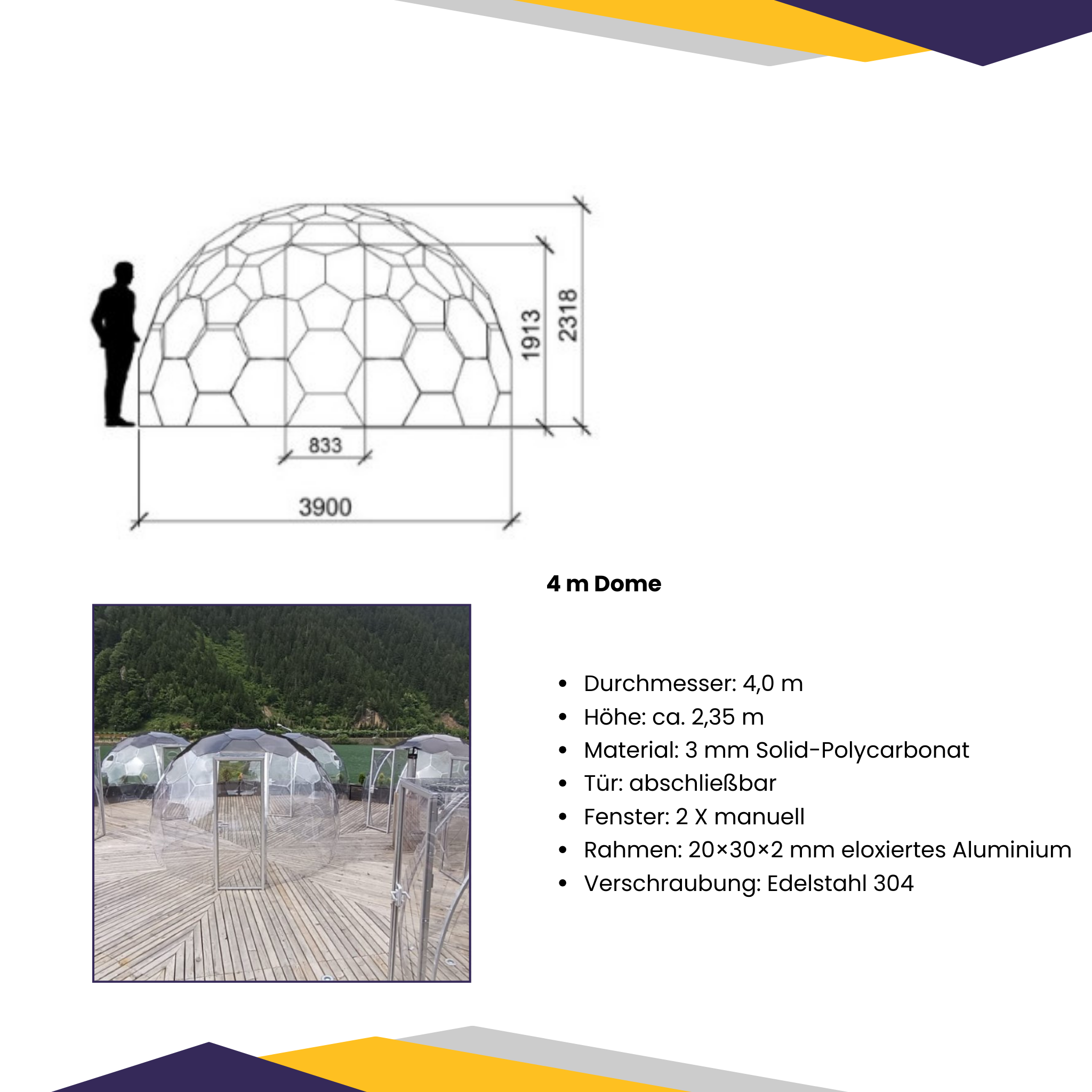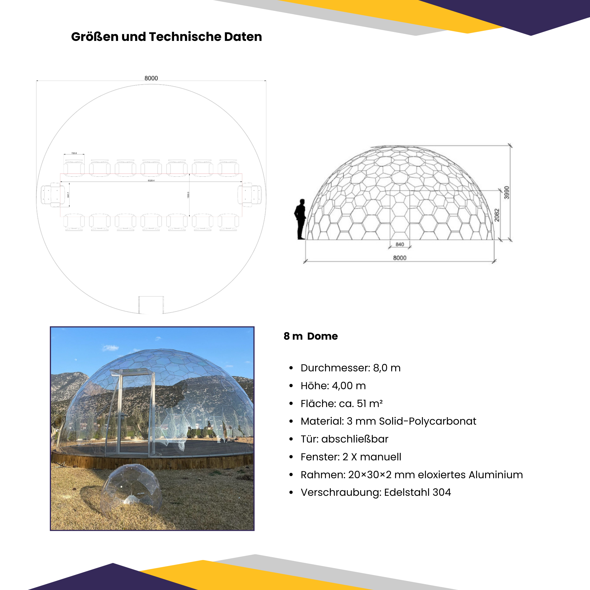 - Endreinigung sowie technische Einweisung am fertig montierten Dome
