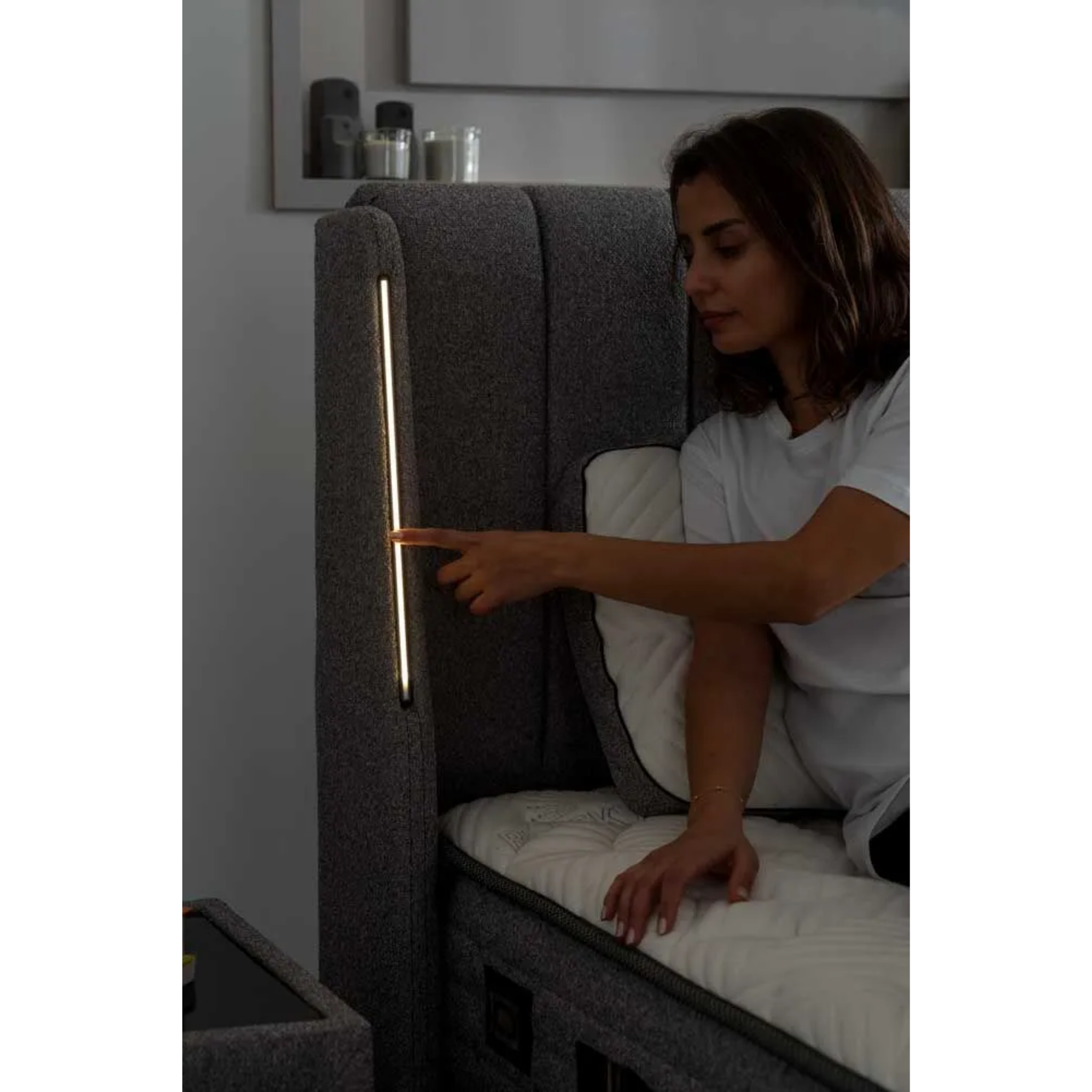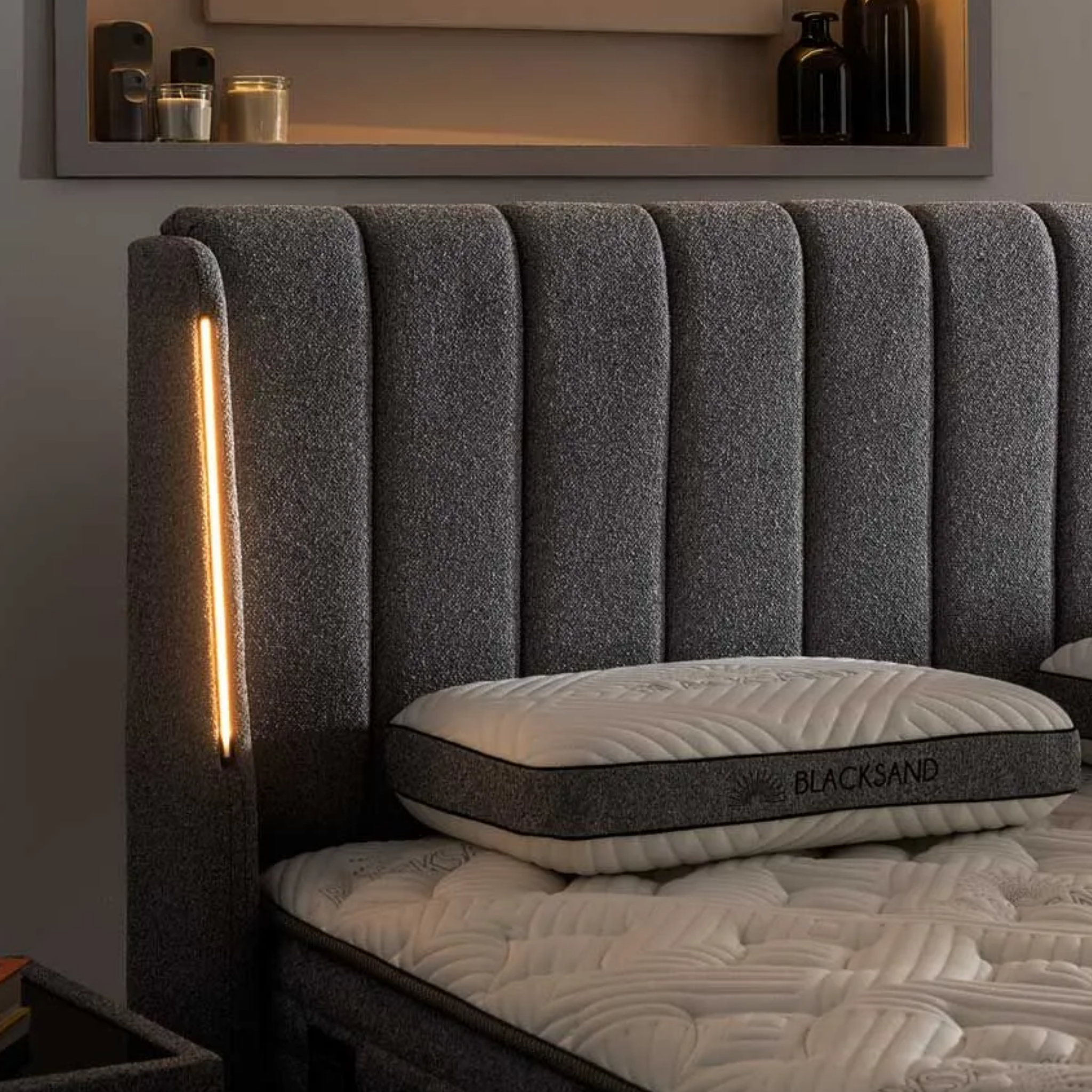 Das Blacksand Bett kombiniert modernes Schlafdesign mit einer besonderen Komforttechnologie: einer integrierten Schicht aus magnetischem schwarzem Sand. Diese mineralhaltige Materialkomposition verleiht dem Bett ein angenehm ausgewogenes Liegegefühl und hebt den Schlafkomfort auf ein neues Niveau.