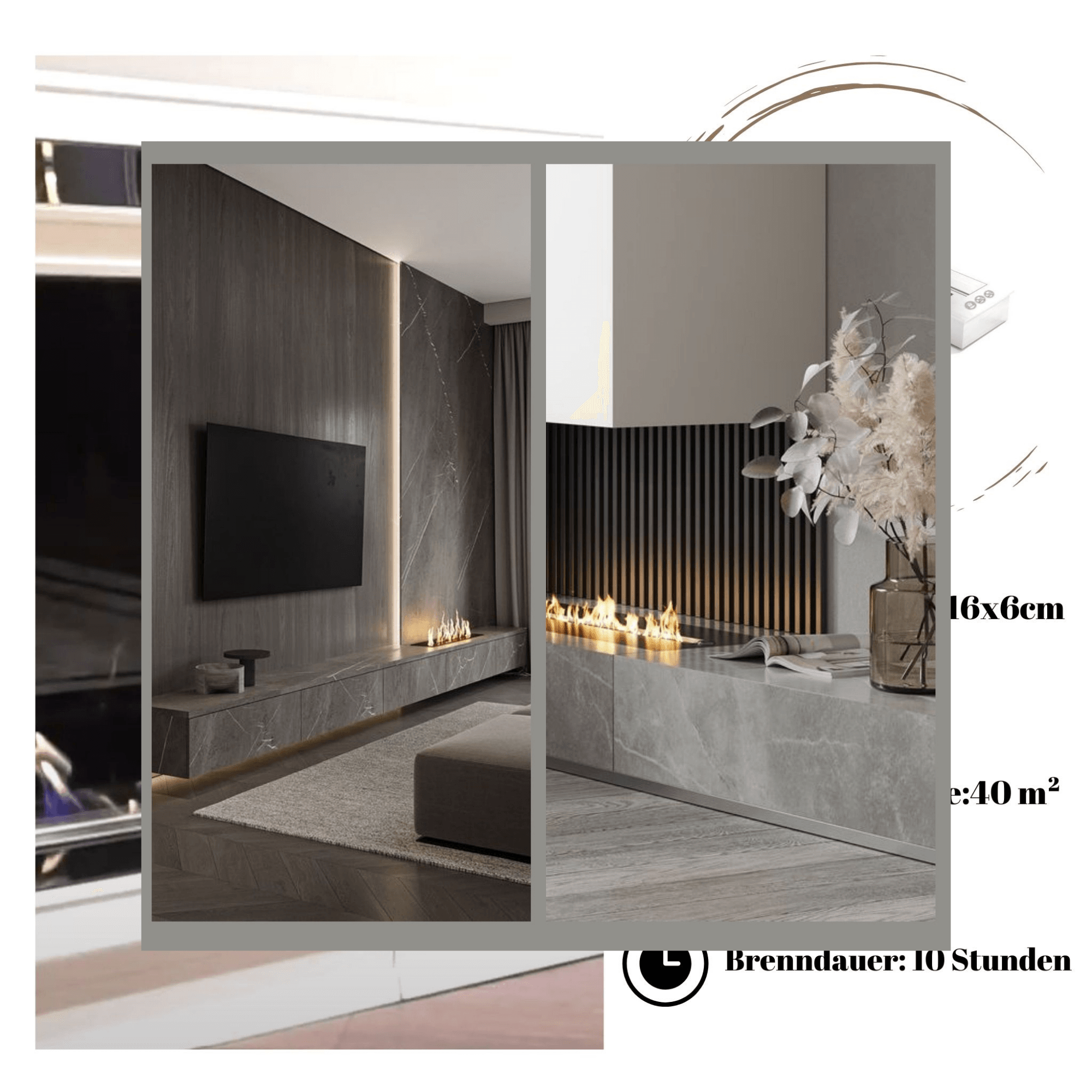 - Einbauausschnitt: 89 × 14 × 6 cm – ideal für Wandnischen, Möbel oder als Tischkamin-Einsatz.