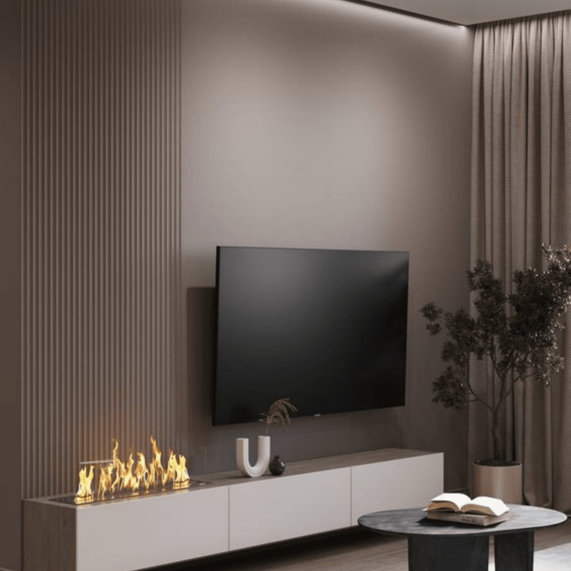In Wandnischen, Möbelkonstruktionen oder als Tischkamin-Einsatz. Maßhaltigkeit des Einbauausschnitts (89 × 14 × 6 cm) beachten.